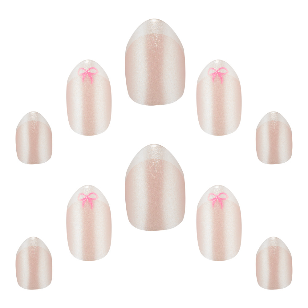 Sweet, simple, and oh-so-pretty, Pink Bows is the perfect blend of timeless and playful. Featuring classic white French tips paired with a delicate blush-pink bow, this look adds just the right touch of charm and elegance. It’s graceful, girly, and designed to make every moment feel a little more special — whether you're dressing up or keeping it cute and casual.
