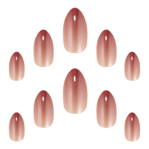 Say hello to glamour in a bottle. Glittering Chestnut combines a rich brown hue with a captivating cat eye shimmer for the perfect blend of warmth and shine. Finished in a flattering short almond shape and sealed with a glossy top coat, it delivers a salon quality look that’s effortlessly chic