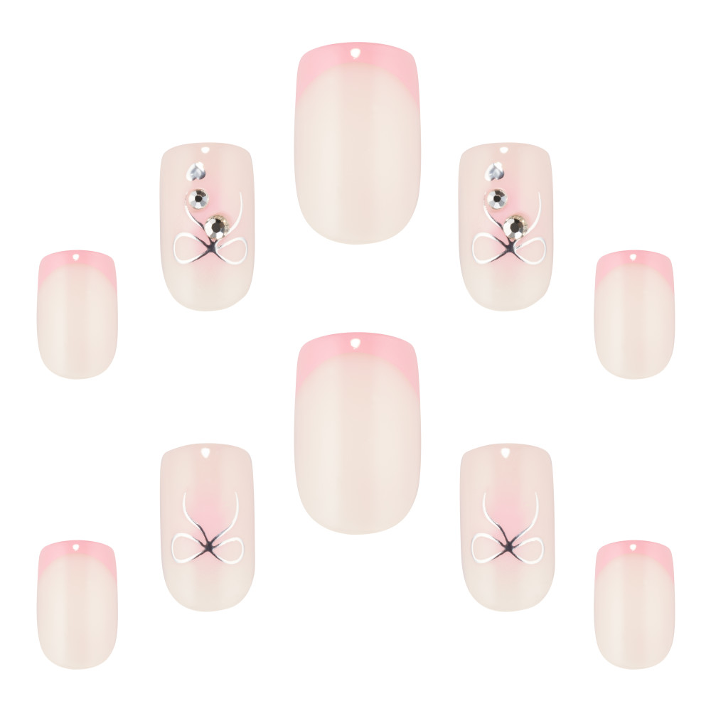 Soft, sweet, and full of charm. Pretty in Pink features a delicate nude base with playful pink French tips and a tiny bow on the accent nail - because the little details make all the difference. It’s girly, graceful, and made for your cutest moments.