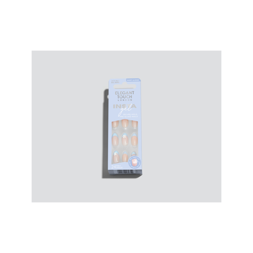 ‘Blue Hibiscus’ the trendy floral design on a classic French nail. Simply peel, press and go for an instant manicure.